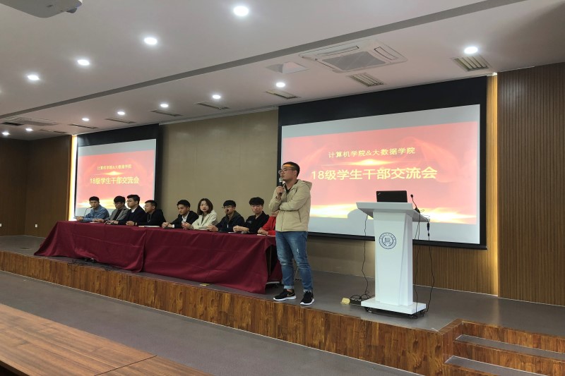 11月16日中午13: 00,计算机与软件工程学院和大数据与人工智能学院于东二五楼报告厅成功举行2018级学生干部交流会,本次交流会旨在增强学生干部工作导向性,确保学生工作质量和效率。会议由院学生会办公室委员李可欣主持,计算机学院和大数据学院学生会代表张士许、刘振兴、杨康、刘紫玲;团总支代表余嘉伟;计算机协会代表全意成;IT学风社代表胡一航;APP创意设计中心代表程涛;学院媒体中心代表支俊寅等参加了交流会。 (图为计算机与软件工程学院学生会主席张士许做分享)会议伊始,张士许向大家介绍学生干部的主要工作职责,指出学生干部是学校开展学生工作的桥梁和纽带,是做好各项学生工作的中坚力量,是有效开展学生思想教育和行为管理工作的得力助手,同时也表达了对学生干部的自我要求和美好展望。 (图为18级学生干部们认真聆听)随后各学生组织、社团代表相继发言,介绍了各组织、社团主要工作内容与活动开展注意事项,提出大家应当加强联络沟通和情感交流,促进学生工作朝着更优秀的方向阔步前进。在交流提问环节,新生干部