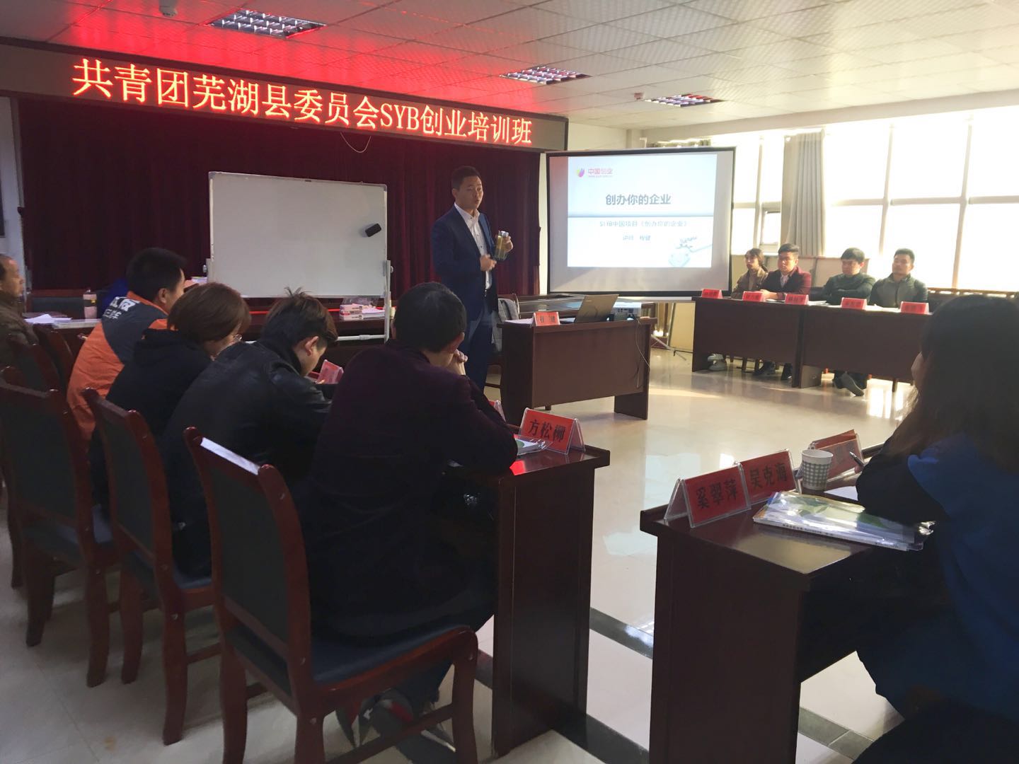 2018年11月14日,通识教育与外国语学院素培中心横向课题SYB创业培训项目在芜湖县共青团团委正式开班。本次培训课程由人社部SYB创业培训高级讲师程健老师任主讲,学员主要是芜湖县当地的创业者。(SYB培训课堂)培训采取理论讲座和实操训练相结合的模式进行,通过分享最新的创业理念和成功案例,培养学员们的创业意识,提升其创业能力和创业水平,帮助学员们开阔视野、更新观念、理清思路,认清当前芜湖县的经济形势,对创业形成更明确的认识。(程健老师上课中)培训现场,30余名参训学员精神饱满、热情高涨,认真聆听创业培训老师的精彩授课。他们表示一定要珍惜机会、排除干扰、认真听讲,学习先进的创业经验和做法,提高自己的创业能力和服务水平,为促进芜湖县经济发展贡献力量。(文、图/朱世萍 校/刘阳 审/刘德胜)