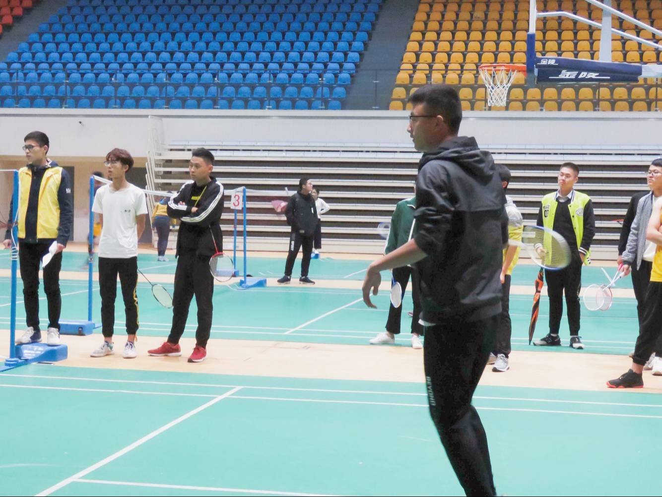 金秋已逝,冬至到来,期盼已久的体育文化月——“羽林争霸”赛于11月7日在新芜校区体育馆隆重举行。本次比赛由通识教育与外国语学院体育教研室主办,校飞羽社承办,比赛准备充足、安排合理、组织有序。 比赛设有男子单打、男子双打、女子单打、女子双打四项,采用淘汰制以及淘汰附加制进行,为确保比赛的公平、公正、公开,裁判员在指导教师的指导下做了充足的准备,工作人员提前1小时到达比赛场地进赛场布置。赛场上,高远球、平抽球、杀球、吊球等技术被参赛者演绎的淋漓尽致,比分不断被改写。呐喊声,加油鼓劲儿声络绎不绝,将比赛一次又一次推向高潮!参赛者们拼尽全力,彰显着一股青春的朝气。收获胜利是不易的!是激动的!是呐喊!是高高跳起! 经过长达几个小时的精彩角逐,都子墨等34名同学成功进入决赛! 此次羽毛球赛的顺利举办,有效地促进了学生之间的沟通和了解,也充分展示参赛选手拼搏、进取的精神。赛场上的他们,挥洒青春、展示活力、尽情释放。希望在接下来的决赛中会有更加出色的表现,预祝他们取得佳绩! (男子单打) (