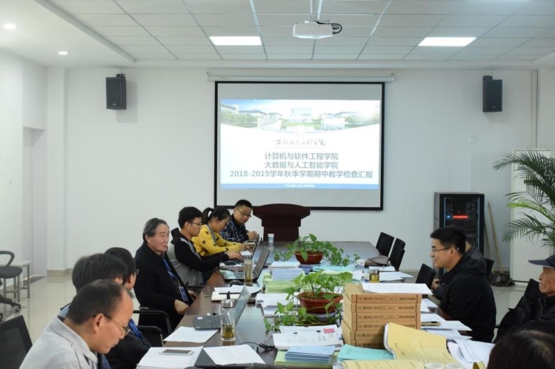 11月9日下午,副校长陈跃东、教务处处长孙辉、教学督导魏中俊教授一行深入计算机与软件工程学院和大数据与人工智能学院开展期中教学检查。会议由执行院长周鸣争主持,院长助理万家山、教学秘书吴锦华、学工秘书袁卫家及教师和辅导员代表参加了期中教学检查汇报会。 (图为教学期中检查汇报会现场)会上,周鸣争院长对学院实验教学、双创中心建设及课堂问题反馈机制、15级毕业设计等工作做了总体介绍,并就大数据专业教学与相关专业评估工作进展、学籍异动管理、实习走访及返校管理、教学改革等作了详细汇报。针对教学改革,周院长提出,要实施过程化监控,依托信息化平台开展学业预警,提高学生的学习主动性。 (图为周鸣争院长做工作汇报)听取汇报后,陈跃东副校长对我院教学改革中实施的一系列措施给予了高度肯定,对我院在教学工作改革取得的成果表示了赞赏,并提出了很多宝贵的意见。