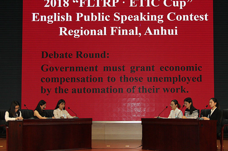 本网讯 10月28日,我校15级英语专业王婷婷同学伴随着观众席上的阵阵掌声,从合肥工业大学报告厅的演讲台上缓缓走下。在这个演讲台上,她凭借出色的表现,以全省第六名的好成绩荣获了2018“外研社·国才杯”全国英语演讲大赛安徽赛区的一等奖,创我校参加“外研社杯”英语演讲大赛历史最佳成绩。跟她同台竞技的,是来自全省40所本科院校,包括中国科技大学、安徽大学、合肥工业大学等在内的87名优秀选手。这并不是安徽信息工程学院近年来在英语专业比赛上取得的最具突破性的成就,类似于这样的成绩,还有很多。2014年11月,第20届中国日报社“21世纪*可口可乐杯”全国英语演讲比赛省赛中,王露露同学获得总分第二的好成绩,在之后的国赛中获得了全国三等奖;2016年11月,吴航同学一举拿下了第22届中国日报社“21世纪*可口可乐杯”全国英语演讲比赛省赛的冠军,在次年三月的国赛中获得国家二等奖。英语学科竞赛的成绩在安信工的竞赛史上占据着重要的一席。王婷婷(左二)参加比赛辩论环节(王婷婷演讲比赛进行中)扎实基础 提升