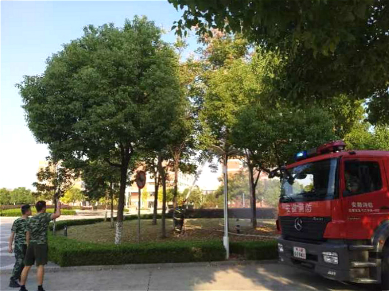 本网讯 10月初,新亚物业在日常巡检中发现文津校区的中心广场常有马蜂萦绕,经查找确认附近一棵大树顶部有一处大型马蜂窝,对路边师生的人身安全构成严重威胁。新亚物业立即上报学校,及时联系消防部门,协助消防人员勘查现场。考虑到学生上课期间清理马蜂窝存在极大安全隐患,最终商定延后清除。10月21日星期天下午,消防人员到达现场,头戴防护罩、身穿防护服,使用高压水枪对蜂窝进行冲射,经过高压冲击,最终将马蜂窝打落,随后新亚物业工作人员协助消防部门使用杀虫剂对四散的马蜂进行喷杀,清理现场,防止马蜂四散伤人。(消防人员正在清理马蜂窝)当天下午,新亚物业配合后勤管理处和保卫处,对校园内马蜂窝进行了集中排查和清理,为师生创造一个安全放心的学习生活环境。(马蜂窝已安全处理)(文、图/陶玲凤 校/张抒娟 审/张援全)