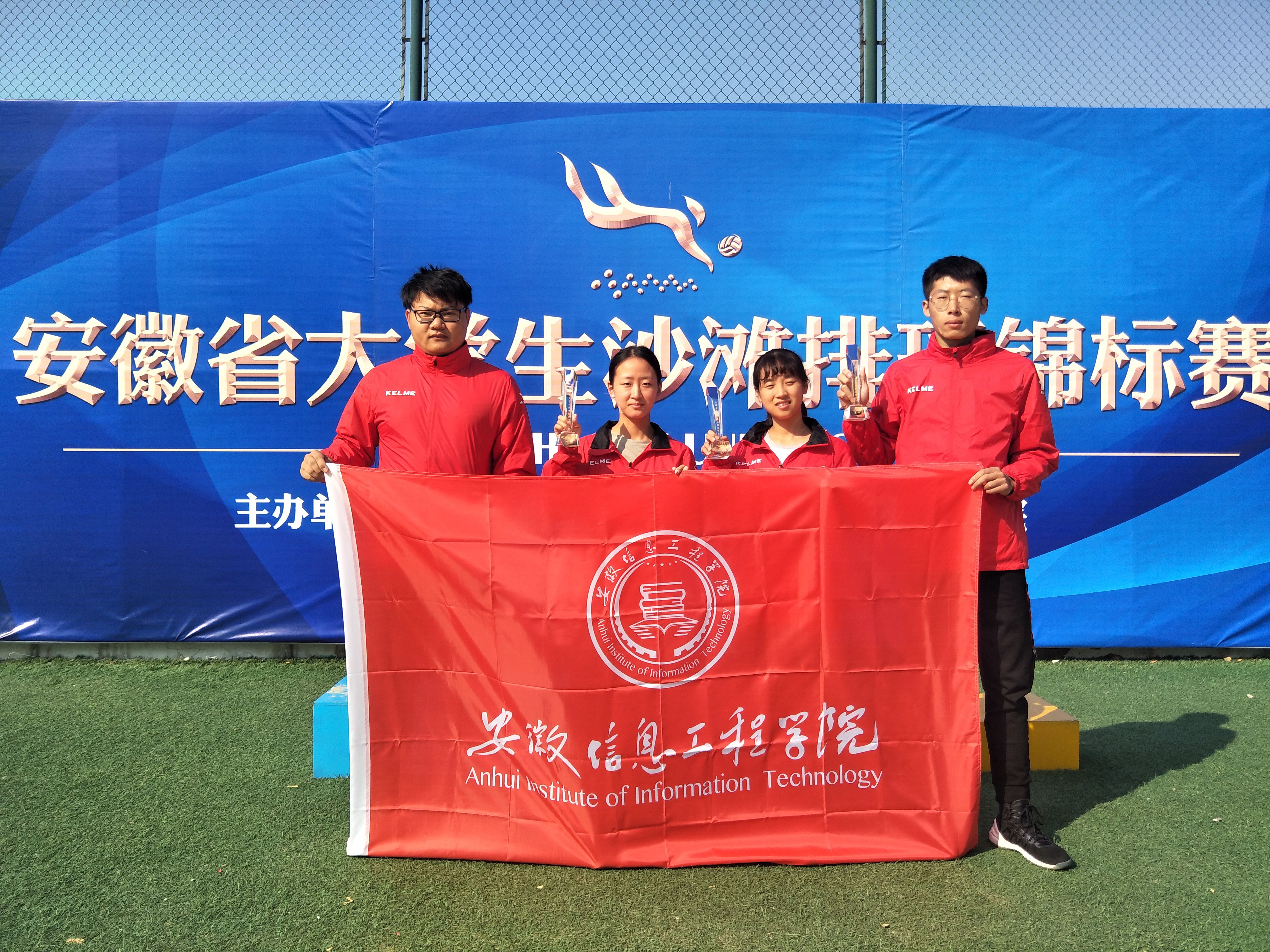 10月8日至12日,2018年安徽省大学生沙滩排球锦标赛在巢湖学院隆重举行。来自全省16所高校的35支代表队参加本次比赛。经过三天的激烈角逐,我校排球队最终获得男子甲组二等奖(第四名)和女子甲组二等奖(第七名)的优异成绩,同时我校获“优秀组织奖”称号。(四名选手合影)本届赛事由安徽省教育厅主办、巢湖学院承办,分甲组(普通本科高校)、乙组(高职高专)、丙组(体育院校)、专业组(高水平运动员)四个组别。本次比赛旨在大力实施学生体魄强健工程,推动学校体育活动开展,促进广大学生全面发展,促进我省沙滩排球运动的发展。(现场比赛)(指导老师张军骑与选手们合影)来自机械工程学院的1602班王锦程、1702班孙虎、1701班陶思琦、1702班胡梦圆四名选手在领队李佳莉,教练员张军骑、李明的指导下,进行了科学、刻苦的训练,在比赛中顽强拼搏、不轻言放弃,展现出了我校学子良好的精神风貌,最终双双获得二等奖,为我校争得了荣誉。期望我校沙滩排球队今后取得更加优异的成绩!(颁奖现场)(文/张军骑图/李明校/王静月审