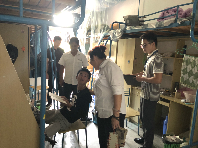 本网讯 秋季天气干燥,是火灾、安全事故以及各类案件的高发季节,为进一步加强宿舍安全管理,创造优良的宿舍环境,为学生创造优良有序的宿舍氛围。后勤管理处校园管理科联合保卫处于9月29日下午三点开展了秋季学生宿舍安全大检查活动。检查组分别对学生宿舍开展大检查,以突击检查、记录隐患,没收违规电器、教育指导的程序进行。检查小组重点对私拉电线、使用大功率电器等违禁物品、违章用电等进行检查,深入查找各宿舍在安全方面存在的漏洞。每到一处,检查小组分别对宿舍存在用电情况的角落进行了细致的检查,对线头老化、私拉电线上床等用电问题进行了纠正和指导,并提出改善卫生情况的要求。现场共发现两起电线上床和4处使用违规大功率电器情况,检查组现场对学生进行教育指导,并没收大功率电器。宿舍是学生的生活场所,一定要注意消防安全,不能使用大功率电器和老化的插座,要对自己负责、对同学负责、对家人负责。此次的宿舍安全大检查活动敲响了安全意识的警钟,增强了大家的自我维护意识,对推动和谐校园具有积极影响。(图为检查现场)(文、图/王