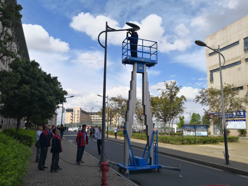 本网讯 在新学期维修保障工作中,新芜物业维修工具中新增了一名新的成员,它的到来,为物业的维修带来了很多便利,即提高了维修效率又提升了安全保障,这个新工具就是双柱移动式升降台,这种升降平台可同时将两名工人提升10米的高度,这为校园路灯维修、体育馆照明灯、A8实训车间照明灯等高度较高的维修维护带来了很多便利。新工具到来后,维修师傅都争先尝试,对新成员的加入都是赞不绝口,一位维修师傅这样说:“在没有升降平台以前,路灯的维修都是搭设脚手架进行操作,即笨重又不安全,维修效率很低,一台路灯的维修从搭设脚手架到维修结束大约需要40分钟,现在有了新工具,只需20分钟就能完成维修”。截至目前,新学期开学保障工作已告一段落,这期间为确保新学期工作的有序进行,基建维修科统一部署,提前谋划,团结合作,提前做好了线路的检查和维修,对校园路灯和草坪景观灯等进行了重点检查和更换,确保以亮丽的校容校貌迎接新学期的到来。要求物业维修中心集中力量,加强巡查,并划分区域,专人专管,随时解决新生入住后发现的问题,同时晚上加派维