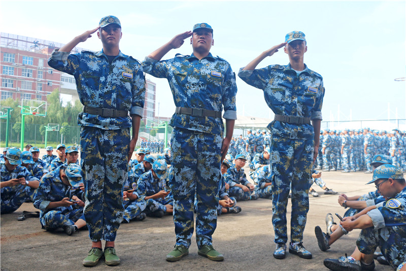 本网讯 烈日炎炎,热情似火。为了提高18级新生的身心素养,增强团队的凝聚力。我校于9月17日上午十点,展开了行军拉练活动。为了保障学生安全,所以新生教官辅导员和教官全程跟队,保卫处级医务室工作人员也全程陪伴。并且顺利完成了全程为八公里的列队行军。(行军休息阶段) (满头大汗的新生)(军训教官鼓励学生)军旗飘扬,学员们歌声嘹亮。矫健的步伐诠释了坚持,挺直的腰杆书写了精神。合营拉歌喊口号,整齐的声音让路人侧目。我院部辅导员魏晓飞老师和蔼可亲,学员们意气风发,教官也与学员打成一片,一起迎着朝阳大步向前走。尽管他们是一支女生居多的队伍,但他们也没有喊苦喊累,可贵的精神让人难忘。 行军途中虽艰苦,但无一人掉队,无一人叫苦叫累,汗水打湿脸庞,也挡不住迷彩的英气。大家互相搀扶,团结协作,不仅磨练了意志,增强了体魄,更培养了学员们团结协作的精神。通过这次拉练行军也展示了我院学生们朝气蓬勃的精神面貌训练有素的军训成果以及学校强有力的后勤工作。 这场拉练行军活动令人难忘,在这场自身毅力