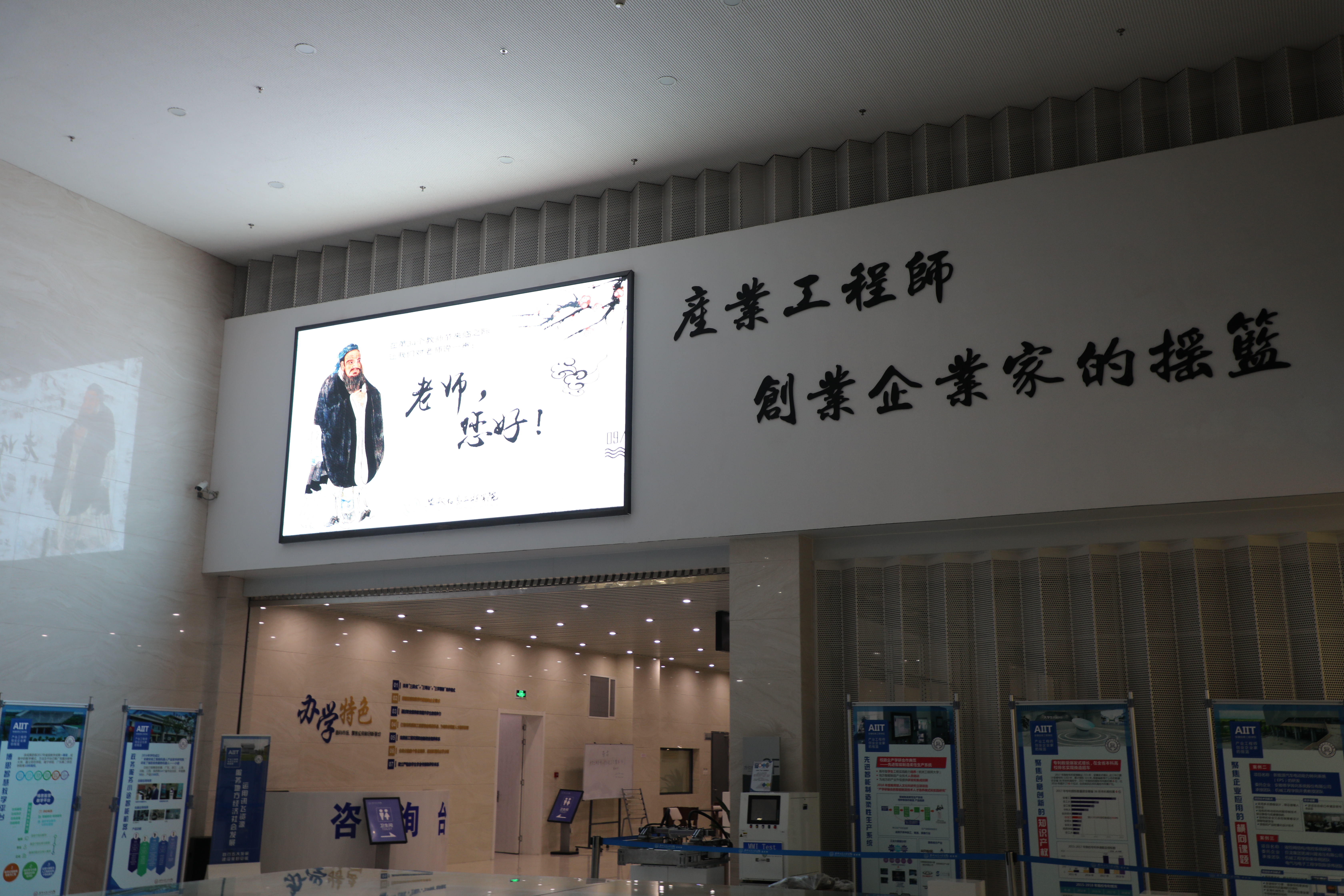 本网讯 教师是“人类心灵的工程师” ——加里宁说起教师,我们有很多印象,“春蚕”、“蜡烛”、“园丁”,一直以来教师都在自己的岗位上勤勤恳恳埋首工作,时值第34个教师节,安徽信息工程学院在图书馆与教学楼电子大屏上为教师们亮灯。屏幕上显眼的“老师,您好!” 灯光效果,在安信工的天空中燃亮了教育之光。“为教师亮灯”,美丽教师,靓丽时代,让知识闪光。此次“为教师亮灯”公益活动,由教育部教师工作司、中国教师发展基金会主办。全国多所城市和多家高校参与此次活动,旨在通过这一行动,增强教师的职业自豪感、工作责任感和未来使命感。据悉,此次安徽信息工程学院于9月10日晚20:00——21:00,在图书馆和教学楼三块电子大屏上轮播祝福语,代表全校学生向老师们道一声:老师,您好!(图书馆大屏)(教学楼大屏)(文/张磊 图/褚其岭 审/褚其岭)