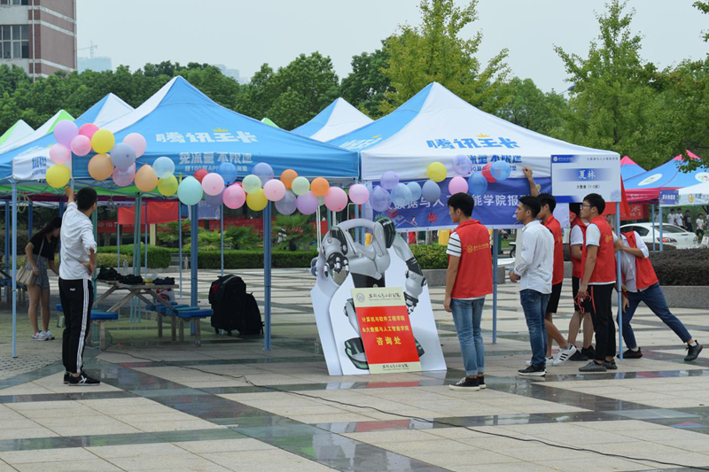 金秋九月,喜迎新生。2018年9月7日,我校机械工程学院又迎来了新的同学,新的希望!早在三天前,我院学生会成员就着手布置迎新活动,对新生引导和安排流程进行了统一规范。同时,学生会也制作了精美的展板展示我院特色活动及入学日程安排。(家长在休息区等待)早上七点钟,机械工程学院迎接新生工作在体育馆下正式拉开帷幕。学生会的同学们早早来到迎新地点进行布置,布置完毕后,迎新队伍已全部到齐“严阵以待”。虽然天公不作美,连绵的阴雨天气给报到带来了一些麻烦,但是由于迎新工作准备充分、组织得力,迎新工作进行得井然有序。(迎新工作井然有序)(我们是行李的搬运工)在迎新过程中,有的工作人员在校门口辛苦地举着院牌接应新生;有的在接待处耐心地接受家长和新同学的咨询;有的微笑着为学弟学妹办理入学手续;还有部分同学主动积极地接过家长的行李带领新生们去往宿舍区。接送的同学们都相当辛苦,虽然很累,但看着家长和新同学们满怀感激的笑容,再累也是值得的。(即使到天黑 也为你守候)晚上,18级新生辅导员韩海东、孙奇慧前往我院18级