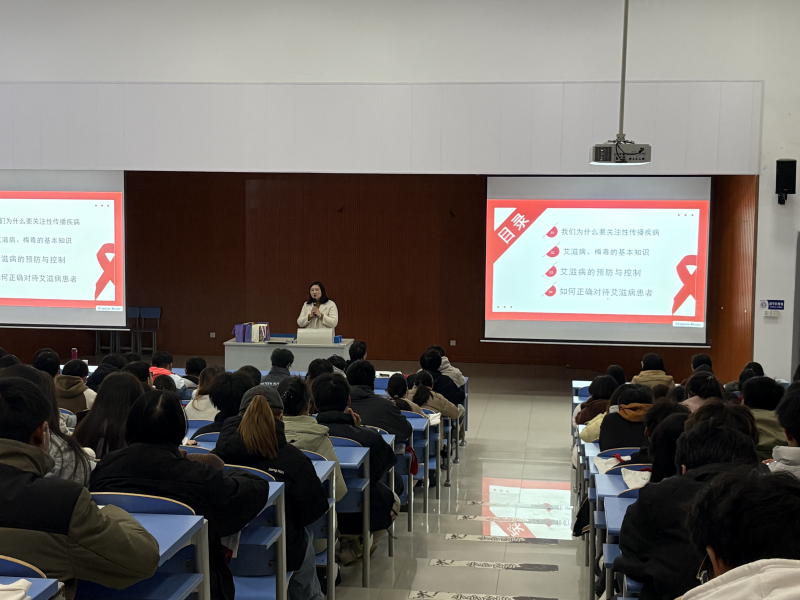 为了提升全校师生对艾滋病的正确认知,增强预防意识,并积极参与到艾滋病防治工作中来,12月4日下午,由后勤管理处医务室联合湾沚区疾控中心共同组织了一场以“社会共治,终结艾滋,共享健康”为主题的健康知识讲座。本次活动特别邀请了芜湖市疾控中心艾防科科长方艳娇作为主讲嘉宾,吸引了来自各学院的240名学生代表及校医务室全体医护人员参加。活动伊始,湾沚区疾控中心工作人员向每位参与者分发了关于艾滋病预防的信息手册,旨在普及相关基础知识。随后,在方艳娇的带领下,大家通过一系列生动具体的案例学习了性病与艾滋病的基本概念、其对社会和个人可能造成的危害、有效的防护措施以及最新的检测与治疗方法等内容。她以其深厚的专业背景结合丰富的实践经验,使得整个讲解过程既详实又易于理解。互动环节中,同学们积极提问,涵盖了从日常行为习惯到特定情境下如何应对等多个方面的问题。面对学生们的热情参与,方艳娇耐心细致地一一作答,现场氛围活跃而富有成效。此外,她还鼓励所有人行动起来,共同努力构建一个没有歧视、更加包容的社会环境,为实现消