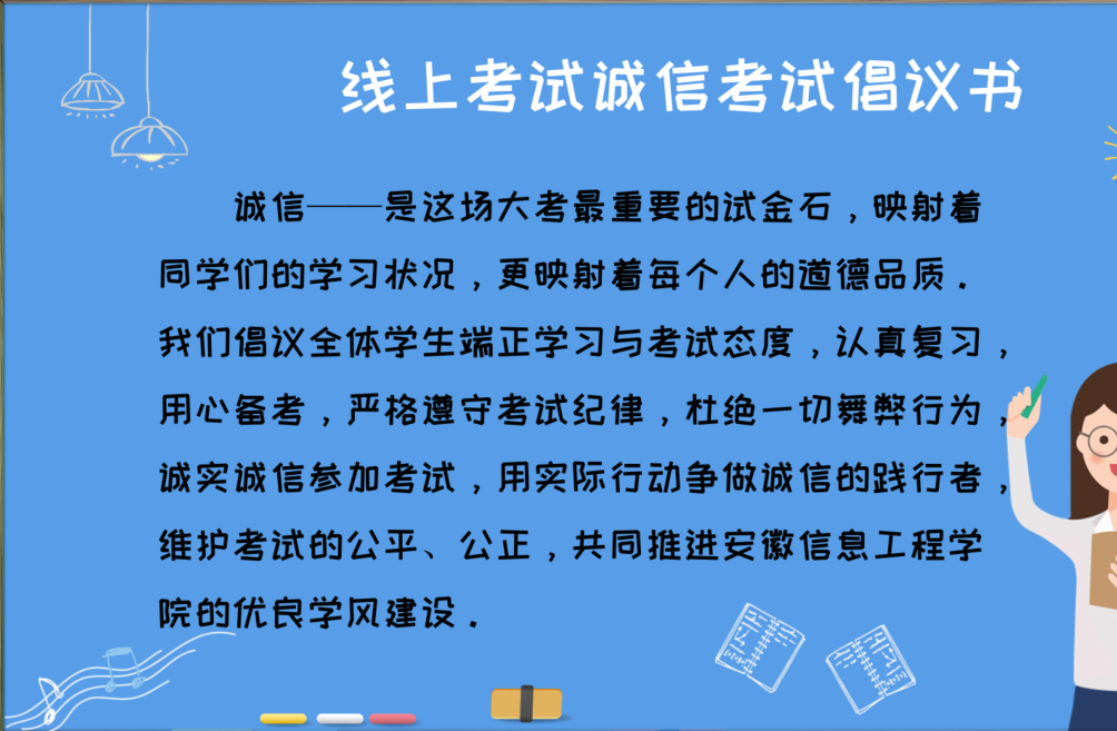 为了加强同学们诚信考试的意识,杜绝考场舞弊的行为,继续发扬计算机与大数据学院优良的考风考纪传统,建设校园诚信文化。计算机与大数据学院全体18级,19级辅导员举行了线上主题班会,强调特殊时期,严肃线上考试的考风考纪,诚信对待。(图为线上诚信考试倡议书)通过诚信教育主题班会意在强调考试不仅是对所学知识的考察,更是对道德品质的考验,要严格遵守考试规章制度,实事求是,杜绝一切考试作弊形式。线上学期即将结束,同学们也将迎来线上期末考试的大关,而考试不过是对这一段学习的一次检测,我们需要的是看到一个真实的自我,发现自己的优势和不足,从而明确自己的定位,继而找准自己的目标,调整方法、提高学习的效率。此外在家学习之余,也要注意个人安全,合理放松,天气炎热,也要切记防溺水。(图为利用博思智慧平台开展线上的教育主题班会)面对考试,要铭记考试规则,恪守诚信承诺。在注意考试纪律的同时也要合理把握备考时间,在有限的时间内增加学习效率,争取在线上期末考试中考出理想的成绩。通过这次教育主题班会,望各位同学懂得大学生素