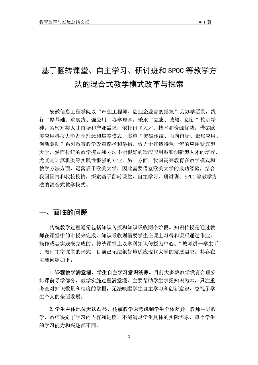 【十七】基于翻转课堂、自主学习、研讨班和SPOC等教学方法的混合式教学模式改革与探索